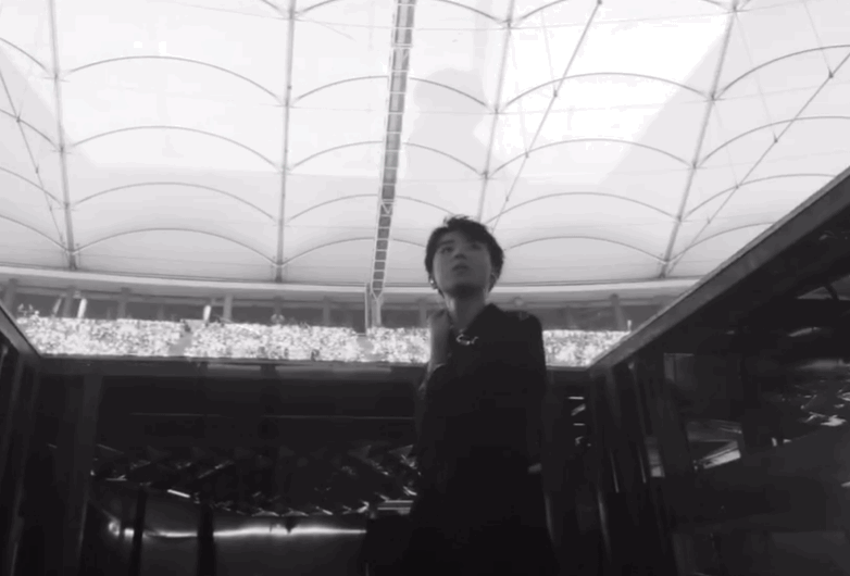 王俊凯工作室当然也看到这一点,那么制作个人纪录片的时候,也是想尽的办法来扬长避短,尽量淡化“灯牌之战”。可以看到彩排的场面都是彩色的,但是到了小凯上场表演的时候就全都成了黑白画面。