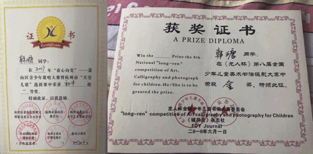 韩菊6岁开始练习钢琴,并通过了钢琴10级。