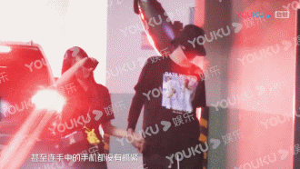 然后,戴着黑色渔夫帽和大面具的吴一凡下车,像暴君总统一样,用他长长的手臂把女孩拉到了他的前面。