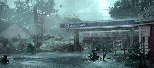 这种现实主义使得电影的恐怖更加扎根,因为居住在那里的人们真的很可能遇到这种危险的灭绝,而给人们安全感的家园也很可能成为一个残酷的杀戮战场。 “鳄鱼风暴”中的超级飓风灾难也为人物造成了另一层两难境地: