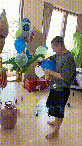陈浩民被吹气球与他的三个女儿。可爱的装饰品漂浮在空气中。有些是甜筒,有些是恐龙。房子装修很热情,这使得人们更好奇房子的全貌。