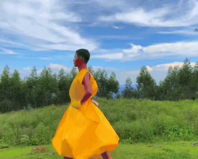 从来不觉得自卑。相反,与巧思,在每一个视频,他精心构思怎样给他时装表演和服装设计自然地融入家乡的草和树。