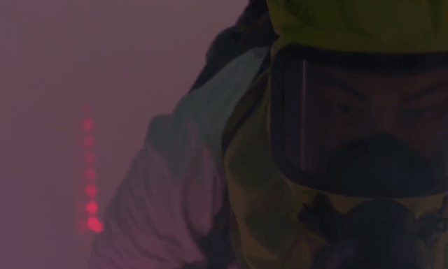 在开始的时候,当气体开始蔓延,男子提醒大家投靠在屋顶上。