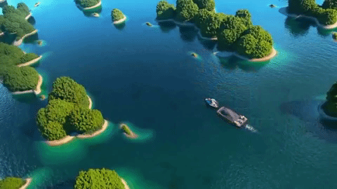 装可乐货船在杭州把孩子带到千岛湖。它的美丽有千岛湖的鸟瞰图。