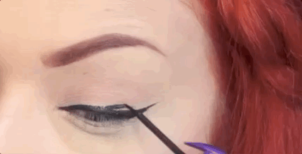 眼影可以稍微简单。猫眼线即将上。事实上,养眼线听起来不错,但是很难实行。闭上眼睛,画好。打开你的眼睛变成了逗号尾巴。用