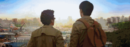 除了行李,海报背后的大型广告牌其实有很多的信息。