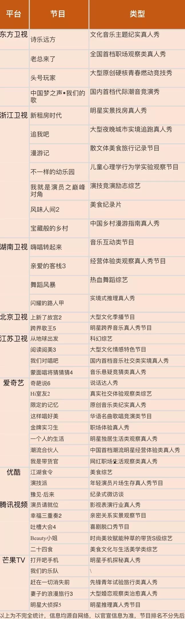与去年前三季度相比,不仅有“偶像从业”,“创建101 ”和“这个!街舞和其他视频网站都具有快速做出了自己的各种各样的艺术动量和高热更多的电台节目,如“声音在现场”和“读者”已经成为一个很大的打击。在今年的前三个季度中,各种各样的艺术喷涂比以前差多了:。少钱原计划展开,各类原各种艺术的发展趋于成熟,同质化现象严重。与此同时,最“百变ñ”计划陷入束缚,难以重新雕刻。过去的热量。