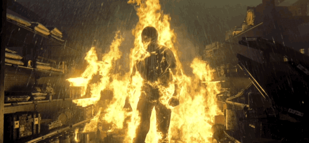 在爆破现场,当轨迹子弹飞出来,从爆炸溅起火花有很强的识别度。不像在电影传统表现方式,在爆破现场,除了激烈的火,其他人与事都模糊不清。