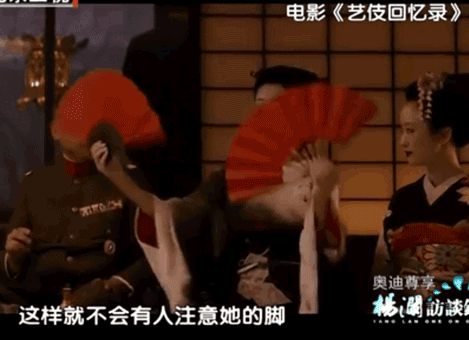 在艺妓回忆录,有用双手折扇的场景。连导演告诉她,你不需要做这个,因为它很难为老百姓做的,它需要很长的时间来练习。