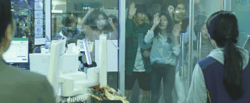 第一个场景是,当永南的家人和义珠终于等到了救援的飞机,因为直升机的重量有限,一个人必须留下来。