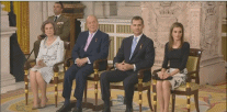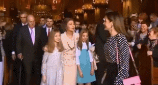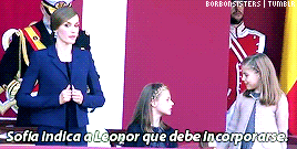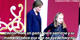2014年,在爷爷胡安·卡洛斯一世退位仪式,莱昂诺尔坐在危险,而她的妹妹索菲亚对她手中的一些小运动。女王立即指示的小女儿用她的眼睛,指着她,坐在一个合适的姿势:双腿并拢,双手紧握