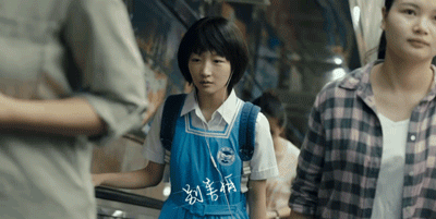 有很多的在膜中的特写镜头。周冬雨有一个普通的脸,雀斑。通过她的表情和眼神,她成功地形陈年。