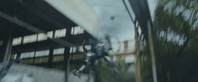 一开始是母舰中释放出来的小圆球形态,紧接着在半空中变形为「六肢机甲怪兽」。