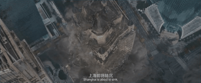 另外还值得一提的,是电影高潮处的「上海陆沉」。