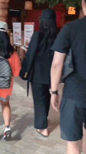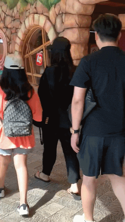 相对比李湘的霸道女总裁打扮,两母女身后的王岳伦更像保镖或者司机,他也是一身黑,T恤搭短裤还有球鞋,还很老派地将包包夹在腋下……王导演真是可爱。