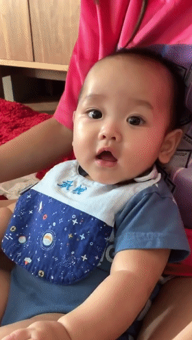 当妈妈陈凯琳在玩手机的时候,明明在看着前来亲友手机镜头的宝贝则是抬头张望并手舞足蹈花式求关注,似乎是在提醒妈妈赶紧放下手机多点看看宝贝。