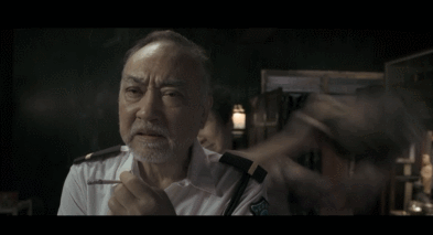 随着镜头扫过,唯有从摊开的他跟师父林正英、许冠英三人泛黄的旧照,和几件戏服感受到些许生机。