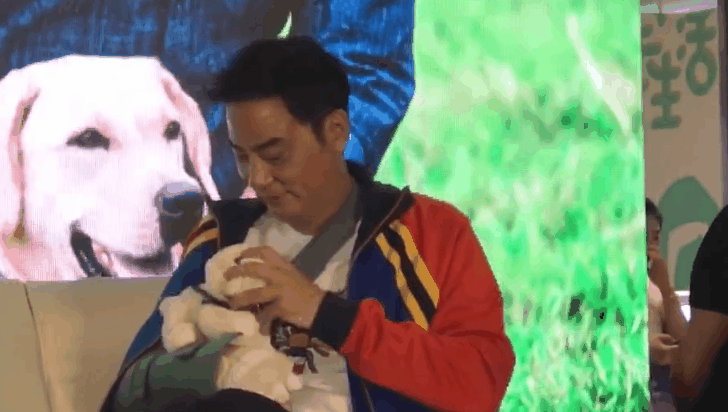 但是从细节中看,他受伤的右手还是非常不适的,频繁用毛绒玩具变换手的姿势,应该手部还是很痛的,不过为了活动和工作,任达华也只能强挤出笑容。