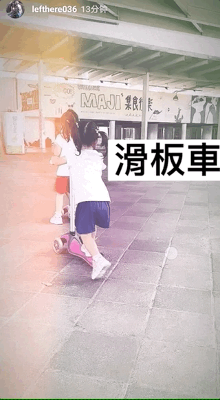 正值放暑假,咘咘和波妞更是形影不离,两人骑着自己的滑板车,动作同步!