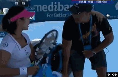 2012年澳网比赛中,首盘首球后李娜黑着脸坐到椅子上。姜山一路小跑过来,刚坐下,李娜就吼道:“你要是看不下去就滚出去!没必要在这里装这个样子!你觉得我打得丢脸是不是? ”
