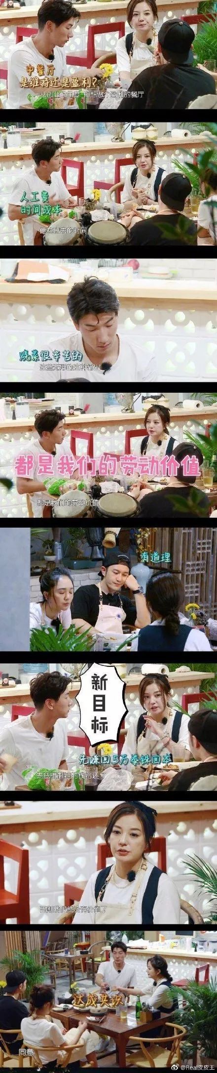 此外,各人分工如下:黄晓明是店长,大厨负责做菜,秦海璐执掌财务,王俊凯是大堂经理,杨紫兼任前台、茶水妹和收银员。