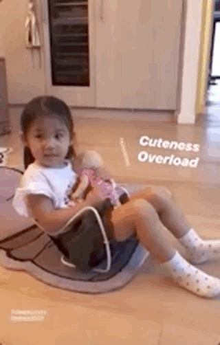 而且这个座椅还可以前后摇晃,Alaia坐在上边儿,不仔细看,还以为是在练习卷腹呢!好身材从小开始培养!